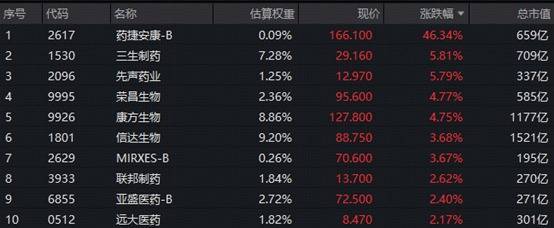 港股通创新药ETF(520880)覆盖37家创新药研发类公司,33股收涨,权重股信达生物、康方生物、三生制药分别上涨3.68%、4.75%、5.81%,百济神州、中国生物制药、石药集团等均收红。