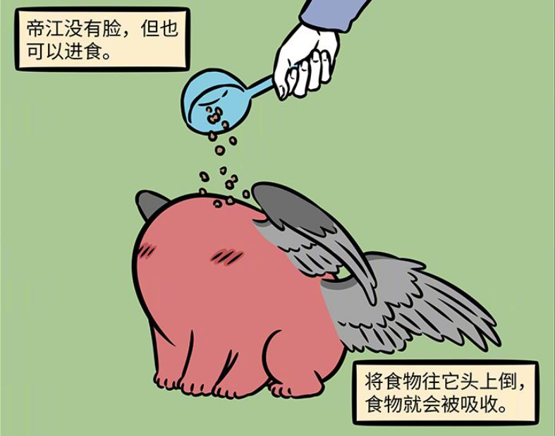 事实上帝江的喂养十分简单,虽然帝江没有五官,但这并不妨碍帝江进食,每当喂食的时候,就只要将食物往它们的头顶上倒,食物就会被帝江吸收,可以说十分方便