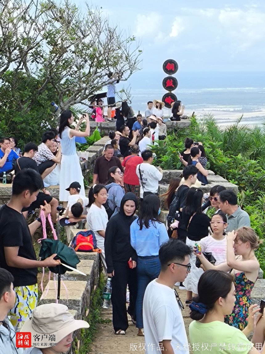 记者注意到,在海南航天乐园铜鼓岭景区,游客们沿着蜿蜒山径攀登,在层林叠翠间感受“天然氧吧”的清新。景区内,亲子家庭与摄影爱好者成为主流群体,不少人驻足于揽月台、观海长廊、风动石等特色景点,用镜头定格月亮湾、卧龙岭山海相接的壮丽画面。其中卧龙岭成为新晋网红打卡点,十八座大小不同的山脉绵延起伏,形似卧龙盘伏在南海海面,远处的七洲列岛犹如“龙珠散落南海”,游客们可以在此俯瞰28公里长的龙形海岸线。